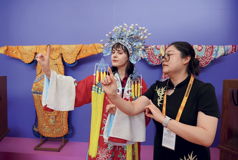 Dès son entrée dans les lieux, Jood Ghazwan Sharaf, une étudiante bulgare, a été happée par l’exposition spéciale « Voyage culturel à travers l’Opéra de Pékin ». Studio XR (réalité extendue), exercices de fitness, immersion costumée, restaurants thématiques… tout ici se décline aux couleurs de l’Opéra de Pékin, faisant de cette exposition l’un des passages obligés de la CIFTIS.